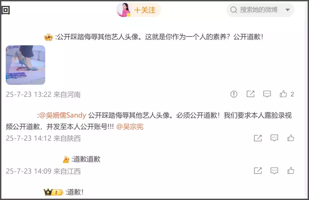 吴姗儒的评论区很快也沦陷了,有网友表示吴姗儒应该公开道歉,仅外网可见有什么诚意?